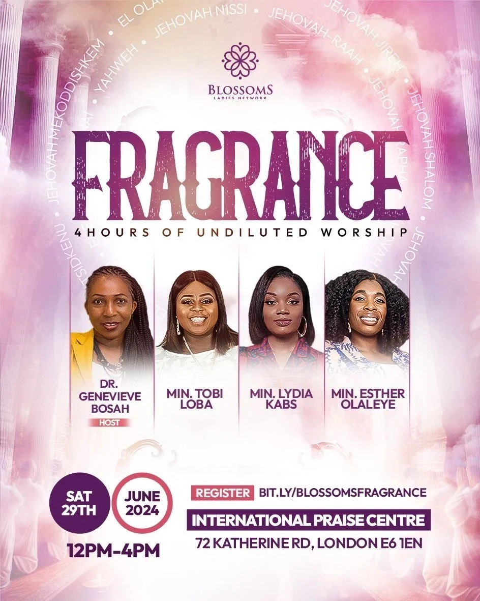 Itโs open to all (male and female, young and old). To attend, kindly register on bit.ly/BLOSSOMSFRAGRANCE What a glorious time youโre set to have in the presence of your maker. Make it a date!
